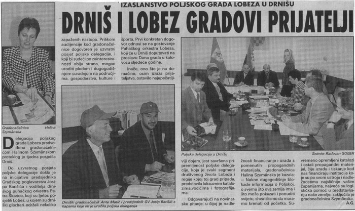 14.10.2000. – Šibenski list – “Drniš i Lobez gradovi prijatelji”