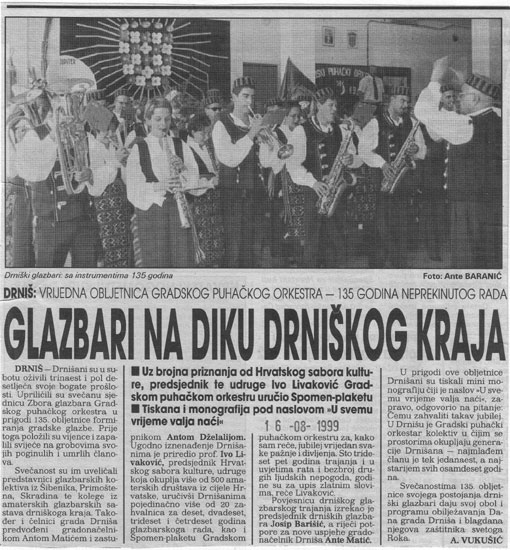 16.08.1999. – Slobodna Dalmacija – “Glazbari na diku drniškog kraja”