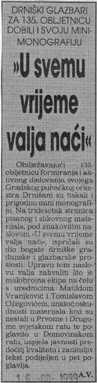 23.10.1999. – Slobodna Dalmacija – “Drniš – grad s bogatom glazbenom tradicijom”
