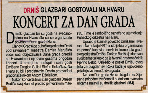 11.02.2007. – Jutarnji list – “Hvarski gradonačelnik kupio Budišin klarinet”